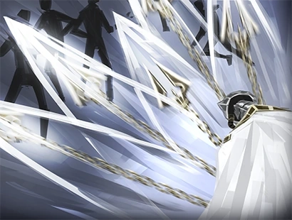 U | 6 | FA | 専用ページ プルート 広域攻撃-個別広域攻撃にて、相手のダイスの値がこのダイスよりも低ければダメージを与える。 3幕目から使用可能。このページは使用後に消滅し、4幕が過ぎると手元に戻る。 |